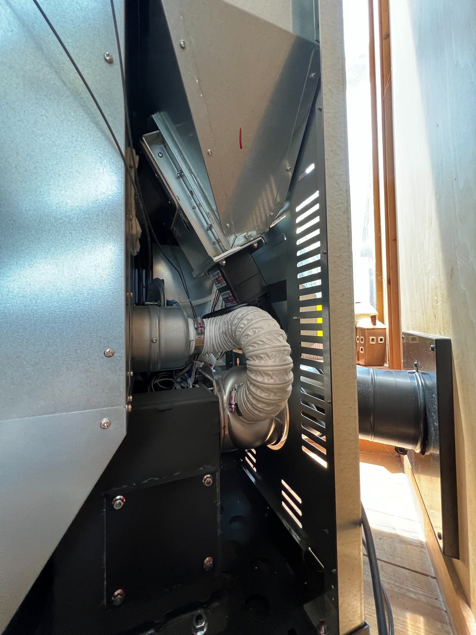 給排気管内や燃焼炉内はもちろん、ストーブ本体のサイドパネルも外し、排気ファンや周辺の埃なども綺麗にさせて頂きました。