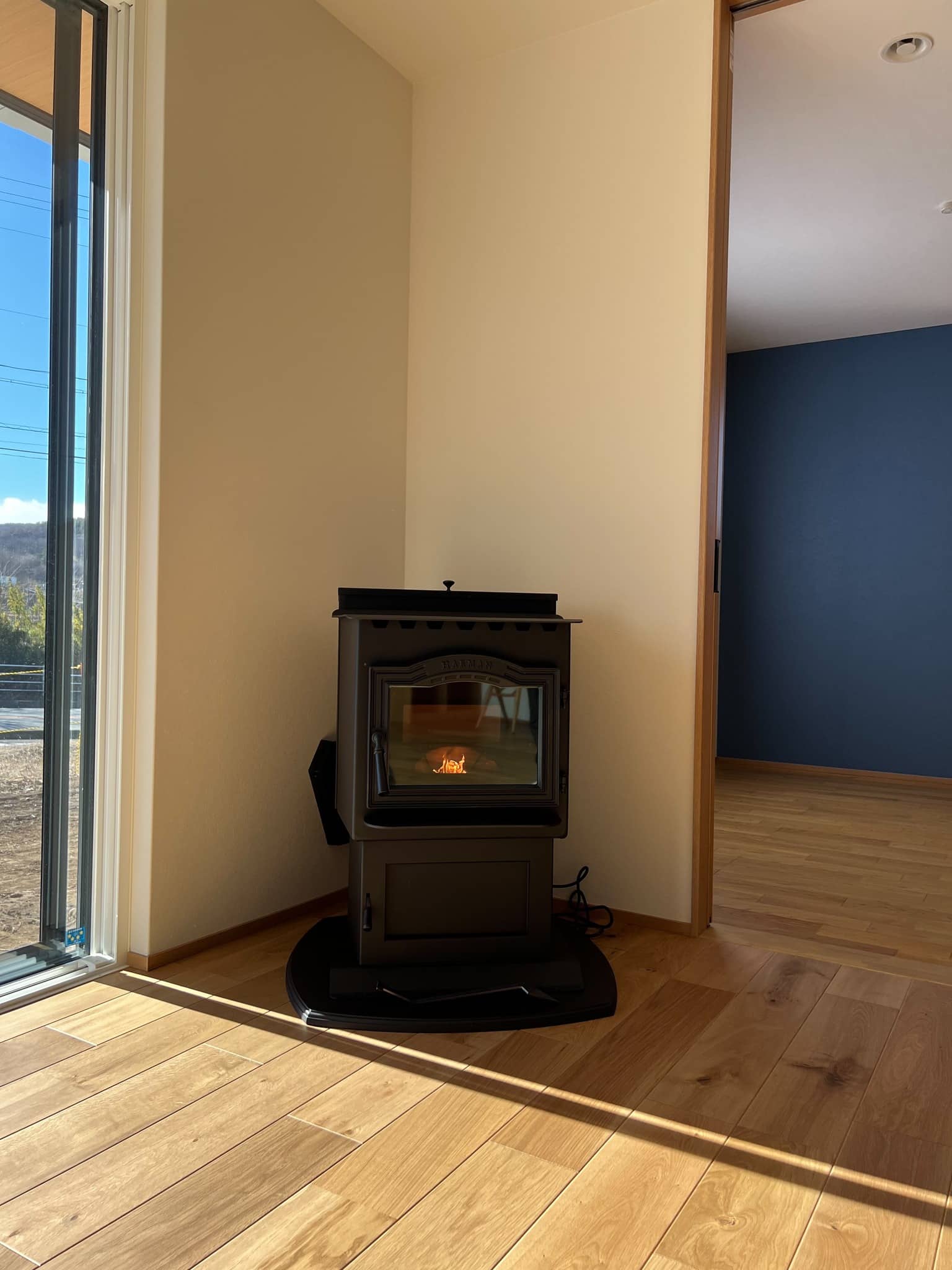 冬は主力暖房としてお使いいただくため、暖房能力の高いハーマンのペレットストーブに。